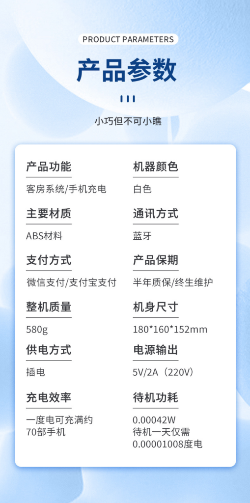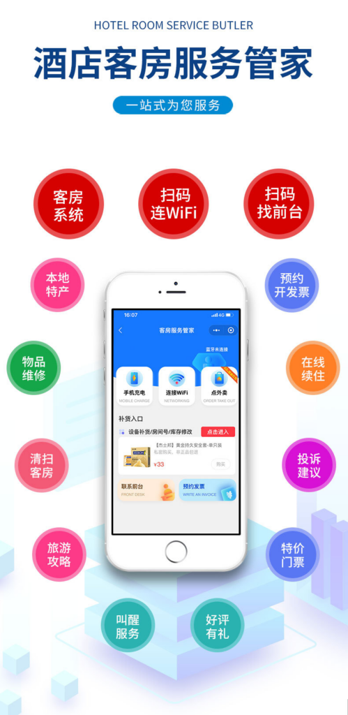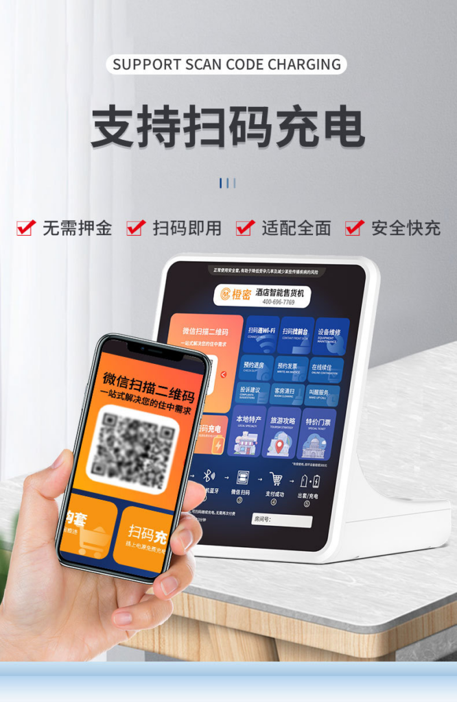 产品功能: 扫码手机充电/扫码客房服务 | ||||